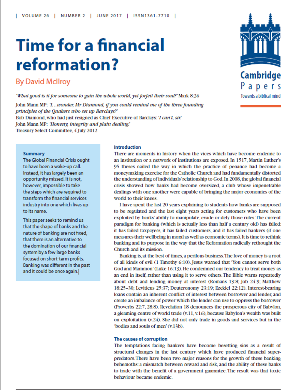 The Jubilee Centre, in partnership with Cambridge Papers and Sallux, is planning to host a webinar with Paul Mills on the topic of ‘Biblical Thoughts on the Future of Money’ on Monday January 29th 2024 at 7:30pm, UK time. (20:30 CET)